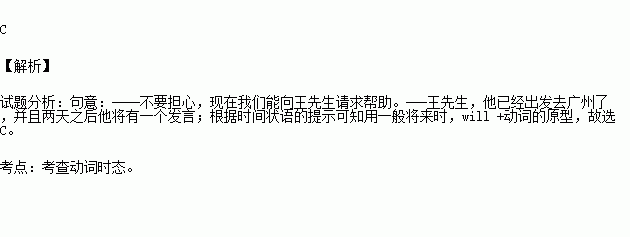 —Mr Wang? He has left for Guangzhou, and he____a speech there in two days.