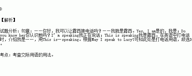 C. I’m speaking D.T his is Lucy speaking