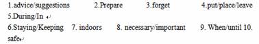 | After an earthquake | Run out of the building 9 it’s safe. Check around you and help the people in trouble. Leave your badly broken building. Keep everyone outside and ererything 10 if you smell or hear a gas . |