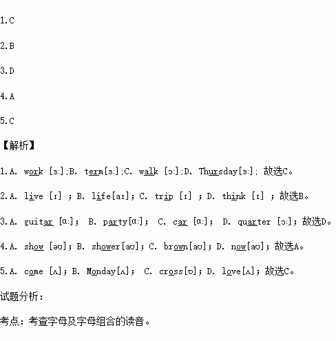 从每组单词中找出划线部分读音与其他三个不相同的选项。