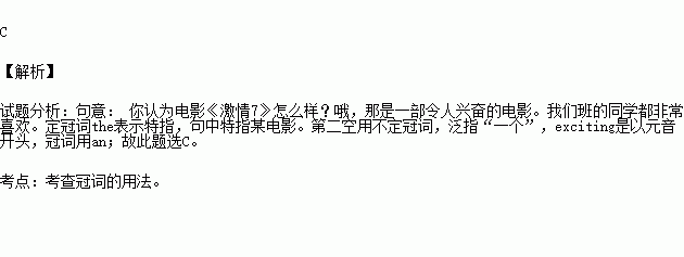 ---Oh, it’s ______exciting film. Our classmates all like it very much.