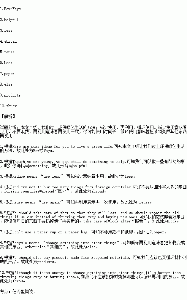To recycle | Change something into something 8. *Join in recycling programs. *Buy 9. made from recycled materials. | * Don’t 10. things away or burn them. |