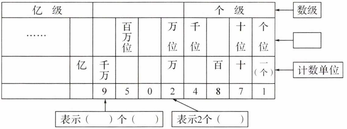 答案:| 亿级 | 万级 | 个级 | 数级 |