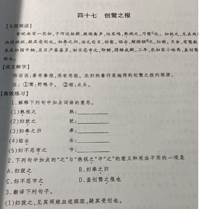 注:当前书本只展示部分页码答案,查看完整答案请下载作业精灵APP。练习册初中文言文读练精华语文答案主要是用来给同学们做完题方便对答案用的,请勿直接抄袭。