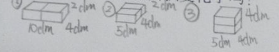 6.用两个长5dm,宽4dm,高2dm的长方体拼成一个大长方体,动手拼一拼,再跟你的同学交流,并试着画一画。拼成长方体前后表面积变化了吗?