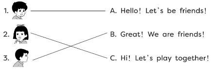 A. Hello! Let’s be friends! B. Great! We are friends! C. Hi! Let’s play together!