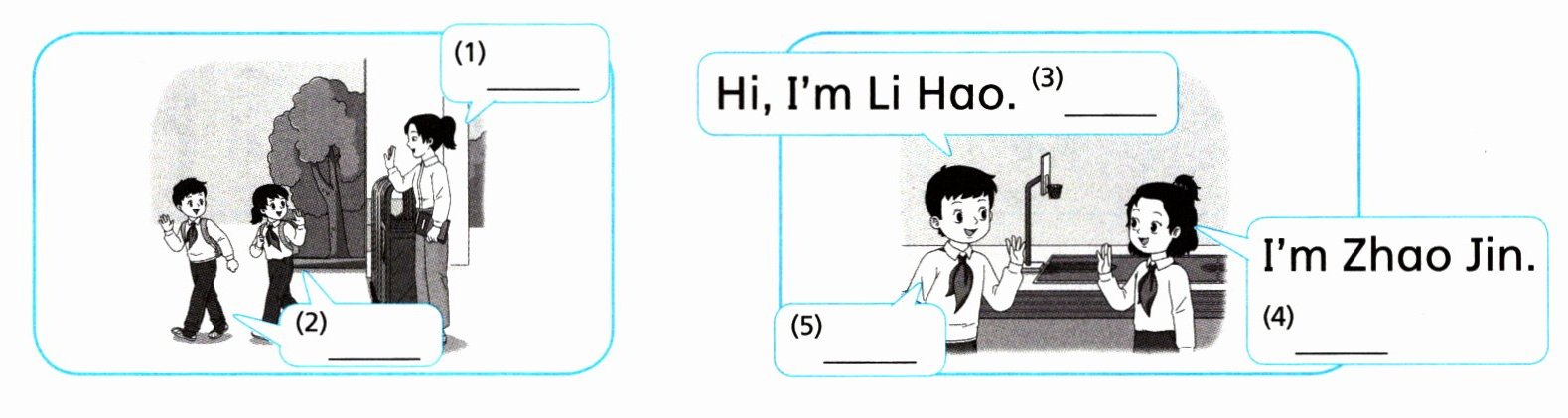D Look and choose(看图,选择合适的句子补全对话,填序号,有一项是多余的)