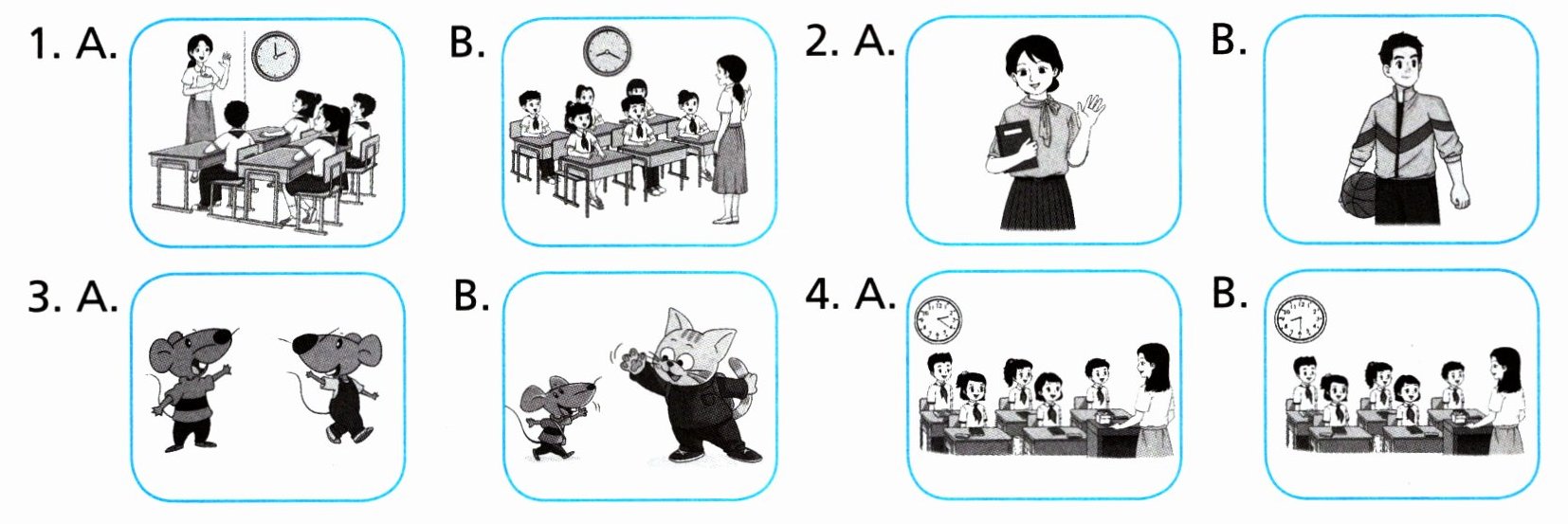 B Listen and circle(听录音,圈出与所听内容相符的图片)