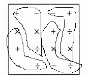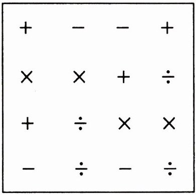 把正方形划分成形状相同、大小相等的四份,使每份中都有“+”、“-”、“×”、“÷”运算符号,怎么分?