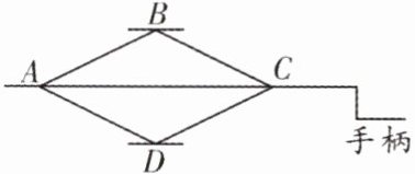 7. 如图为汽车常备的一种千斤顶的原理图,其基本形状是一个菱形ABCD,中间通过螺杆连接,转动手柄可改变∠BCD的大小(菱形的边长不变). 当∠BCA= 28°时,则∠ADC的度数为