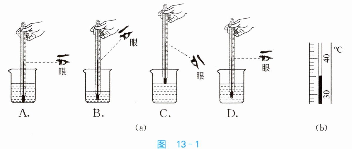 ①选取合适的温度计;②等待几分钟;③操作如图 13 - 1(a)中的