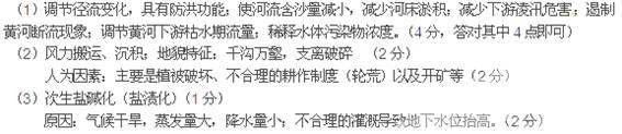 (3)指出A与B地区在利用水资源发展农业生产过程中土壤最容易出现的问题并简述其原因。(3分)