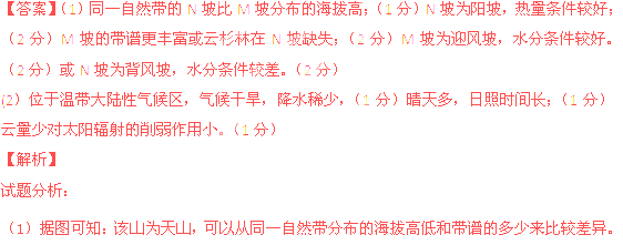 (1)比较图14中M、N两坡向自然带分布特点的主要差异,并说明差异形成的原因(7分)