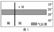 图1为气压带、风带模式示意图(图中纵坐标表示纬度)。回答5~6题。