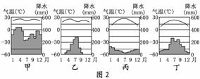 6.与图1中M点气候特点相匹配的气候数据资料是图2中的( )