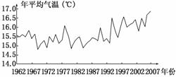 《安徽省应对气候变化方案》提出,安徽省应对气候变化面临巨大挑战,必须加快推进产业结构优化升级,转变经济发展方式。下图表示1962年~2007年安徽省年平均气温变化。完成11~12题。
