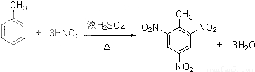 3和甲苯混合加热制备TNT的化学方程式为: