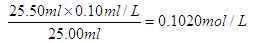 (2)0.1020mol/L(注意:①选择可信数据进行计算,第2次实验数据相比第1、3次实验,偏差太大,舍去不用;②本空答案的有效数字必须为4位)(3分)