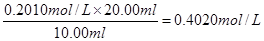 (4)两次滴定消耗盐酸的体积是19.90ml和20.10ml,所以消耗盐酸的体积平均值是20.00ml,所以烧碱溶液的浓度是