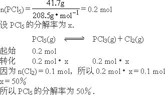 PCl3(g)+Cl2(g)达到平衡,测得容器中含有0.1 mol Cl2,求PCl5的分解百分率.