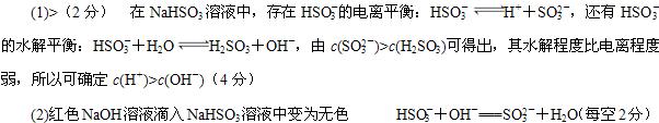 (2)ÏÖÏòNaHSO3ÈÜÒºÖУ¬ÖðµÎ¼ÓÈëÉÙÁ¿º¬ÓзÓ̪µÄNaOHÈÜÒº£¬¿É¹Û²ìµ½µÄÏÖÏóÊÇ________________________________________________________________________£»