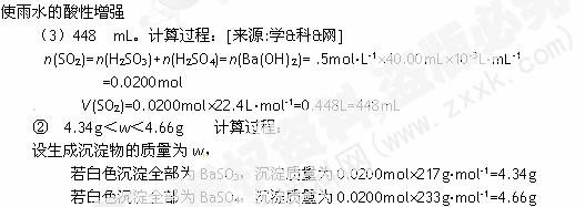 (3)兴趣小组同学取某一时段的这种雨水V L,加入0.5mol·L-1的Ba(OH)2溶液至不再产生沉淀时,恰好消耗40.00 mL Ba(OH)2溶液。请计算(列出计算过程):