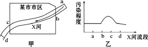 城市环境污染是当前突出的环境问题.如图甲所示,X河流经某工业城市,其中a