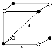 解析: 从上述NaCl晶体结构模型中分割出一个小立方体,如图所示:其中a代表其边长,d代表两个Na+中心间的距离.由此小立方体不难想像出顶点上的每个离子均为8个小立方体所共有.因此小立方体含Na+:4×1/8=1/2,含Cl-:4×1/8=1/2,即每个小立方体含有1/2个(Na+-Cl-)离子对,故:每个小立方体的质量