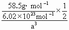 m= ρ= 解得a=2.81×10-8cm, 两个距离最近的Na+中心间的距离d= |