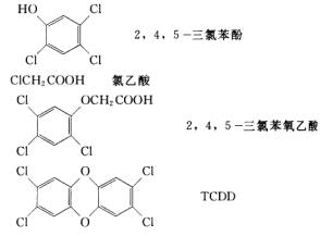 2,4,5一三氯苯酚和氯乙酸反应可制造除草剂2,4,5一三氯苯氧乙酸,某生产该除草剂的:工厂曾在一次事故中泄漏出一种有毒的二噁英,简称TCDD。有关物质的结构式如下: