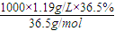 某环保兴趣小组在处理污水样品时,需用质量分数为36.5%的浓盐酸(密度为1.19g/cm