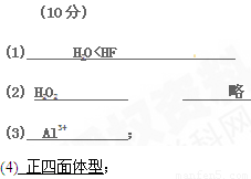 (10分)A、B、C、D、E、F都是短周期元素,原子序数依次增大,B、C、D同周期,A、E同主族。A、C能形成两种液态化合物甲和乙,原子个数比分别为2∶1和1∶1。B元素原子有两个未成对电子,D是周期表中电负性最大的元素,F是地壳中含量最多的金属元素。根据以上信息回答下列问题: