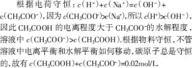 c(CH3COOH)+c(CH3COO-)=0.02 mol/L |