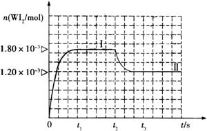 。为模拟该反应,在实验室中准确称取0.508 g碘、0.6992 g金属钨放置于50.0 mL密闭容器中,在一定温度下反应。如图是混合气体中的