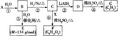 (5)有机物Y与E互为同分异构体,且具有相同的官能团种类和数目,写出所有符合条件的Y的结构简式: 。Y与足量氢氧化钠溶液反应所得产物之一M,能与灼热的氧化铜反应,写出M与灼热的氧化铜反应的化学方程式: 。
