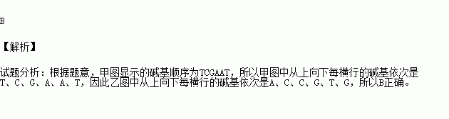 甲、乙两图均为DNA测序仪显示的图像,已知甲图显示的碱基顺序为TCGAAT,则乙图显示的碱基顺序为