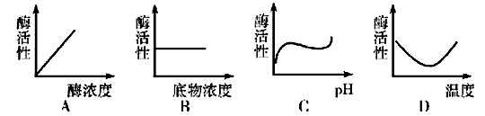 酶的浓度、底物浓度在一定范围内影响反应速率,但不影响酶的活性;酶的活性易受温度、pH的影响,其图象如图所示,因此B所述正确,而A、C、D皆错。