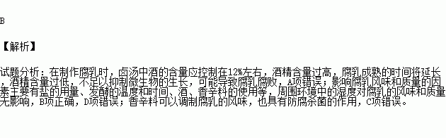 在制作腐乳时,加卤汤密封腌制过程中,对腐乳风味和质量无影响的因素是( )