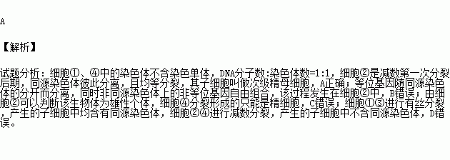 B.等位基因的分离发生在细胞④中,非等位基因的自由组合发生在细胞②中