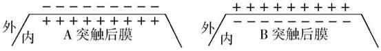 (4)研究表明,运动神经元1释放神经递质作用于突触后膜,引起Na+内流;而抑制性中间神经元能释放神经递质作用于突触后膜,引起Cl-内流。请在下图中标明受神经递质影响后,突触A、B中突触后膜的暂时性电位表现。