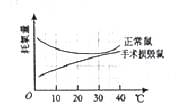 £¨2£©ÊµÑé¶þ ÁíÈ¡Õý³£ÊóºÍÊÖÊõÊÖËð»ÙÊó¶à×飬ÔÚ²»Í¬Î¶ȵĻ·¾³ÖзÅÖÃ30·ÖÖÓ£¬È»ºó²â¶¨´óÊóµ¥Î»Ê±¼äµÄºÄÑõÁ¿¡£Õý³£ÊóµÄ½á¹ûÈçͼËùʾ¡£