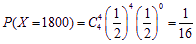 某厂工人在2006年里有1个季度完成生产任务,则得奖金300元;如果有2个季度完成生产任务,则可得奖金750元;如果有3个季度完成生产任务,则可得奖金1260元;如果有4个季度完成生产任务,可得奖金1800元;如果工人四个季度都未完成任务,则没有奖金,假设某工人每季度完成任务与否是等可能的,求他在2006年一年里所得奖金的分布列.