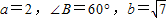 在△ABC中,若,则B的值为( )