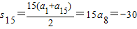 【答案】分析:由等差数列的性质解得a8=-2,再运用等差数列前n项和,结合性质解得.