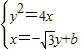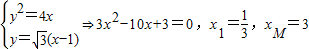 解答:(I)解:∵抛物线C:y2=2px(p>0)上横坐标为3的点M到焦点F的距离为4,