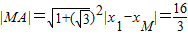 (III)解:由(II)得,直线MA,MB的倾斜角分别为60°,120°,所以