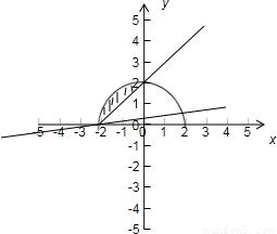 圆是上半圆,直线过(-2,0),(0,2)时,