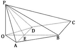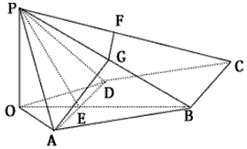 | 解:(Ⅰ)如图,作PO⊥平面ABCD,垂足为点O, 连结OB、OA、OD、OB与AD交于点E,连结PE, ∵AD⊥PB, ∴AD⊥OB, ∵PA=PD, ∴OA=OD,于是OB平分AD,点E为AD的中点, 所以PE⊥AD, 由此知∠PEB为面PAD与面ABCD 所成二面角的平面角, ∴∠PEB=120°,∠PEO=60°, 由已知可求得PE= ∴PO=PE·sin60°= 即点P到平面ABCD的距离为 |