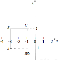 ①当a=-3时,b必须满足-1≤b≤1,可得点(a,b)在坐标平面内所对应点组成图形的长度为|AB|=1-(-1)=2;