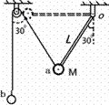如图所示,小球a被一根长为L=0.5m的可绕O轴自由转动的轻质细杆固定在其端点,同时又通过绳跨过光滑定滑轮与另一个质量为m小球b相连,整个装置平衡时杆和绳与竖直方向的夹角均为30°.若将小球a拉水平位置(杆呈水平状态)开始释放,不计摩擦,竖直绳足够长,求:![]()